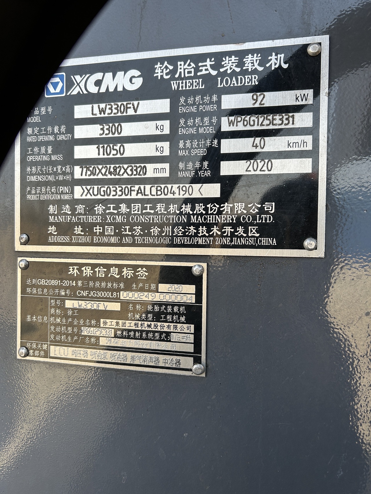 600小时徐工330fv,长臂大铰接大驾驶室,自重11吨多, 原车空调 铲斗大半铲油漆 全车一颗螺丝没动