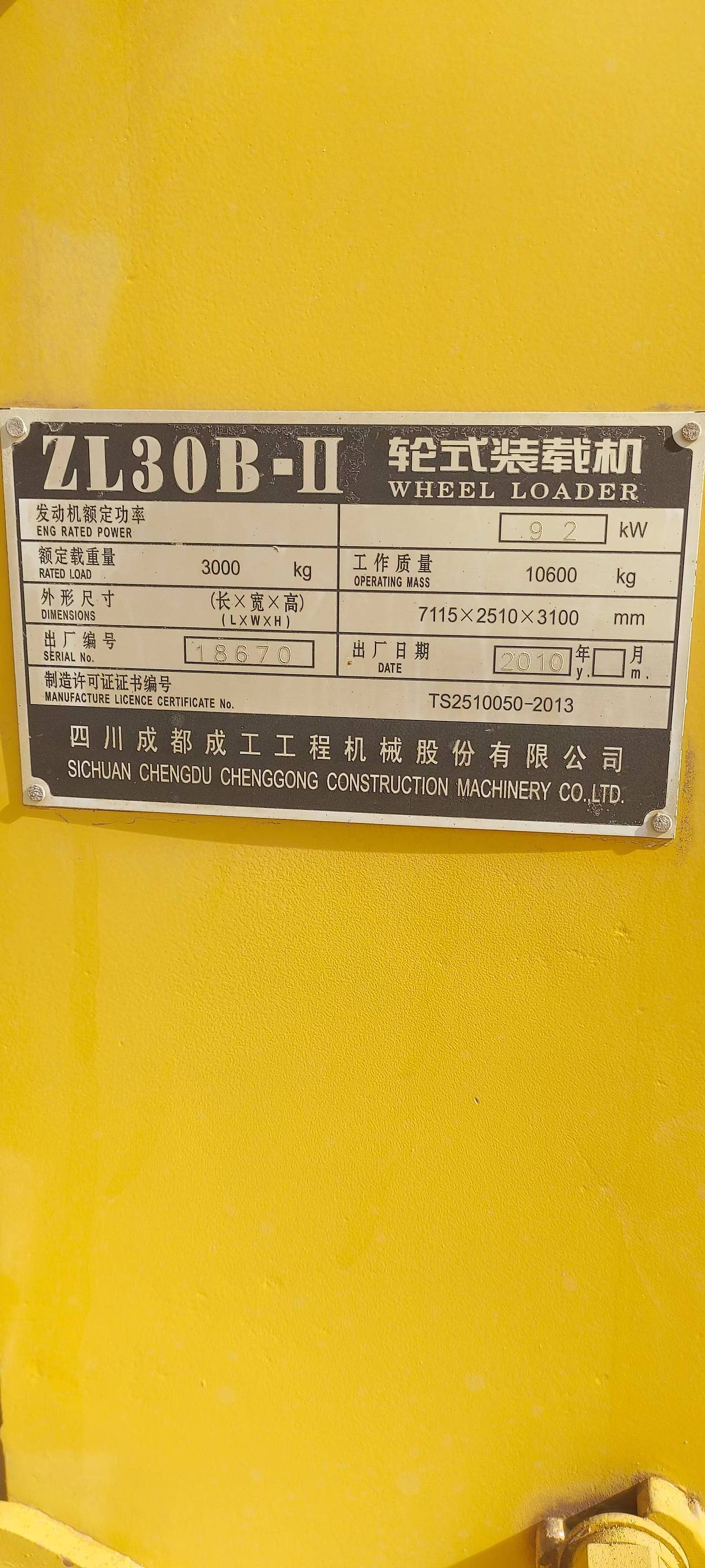 成工30系装载机2010年出厂