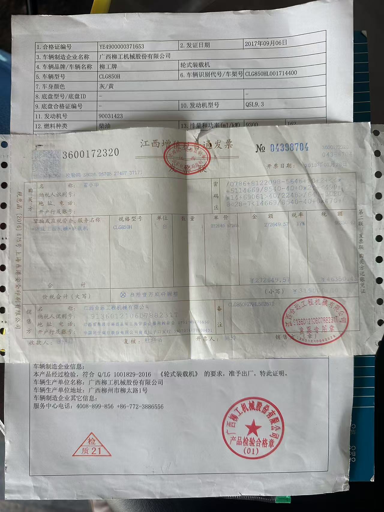 柳工850H装载机2017年出厂