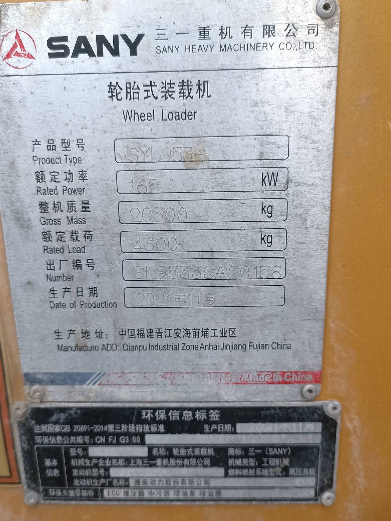 21年11月三一953H,工作2千多小时,带手续,发变原版,原车刹车片,要的速度价位合适!!