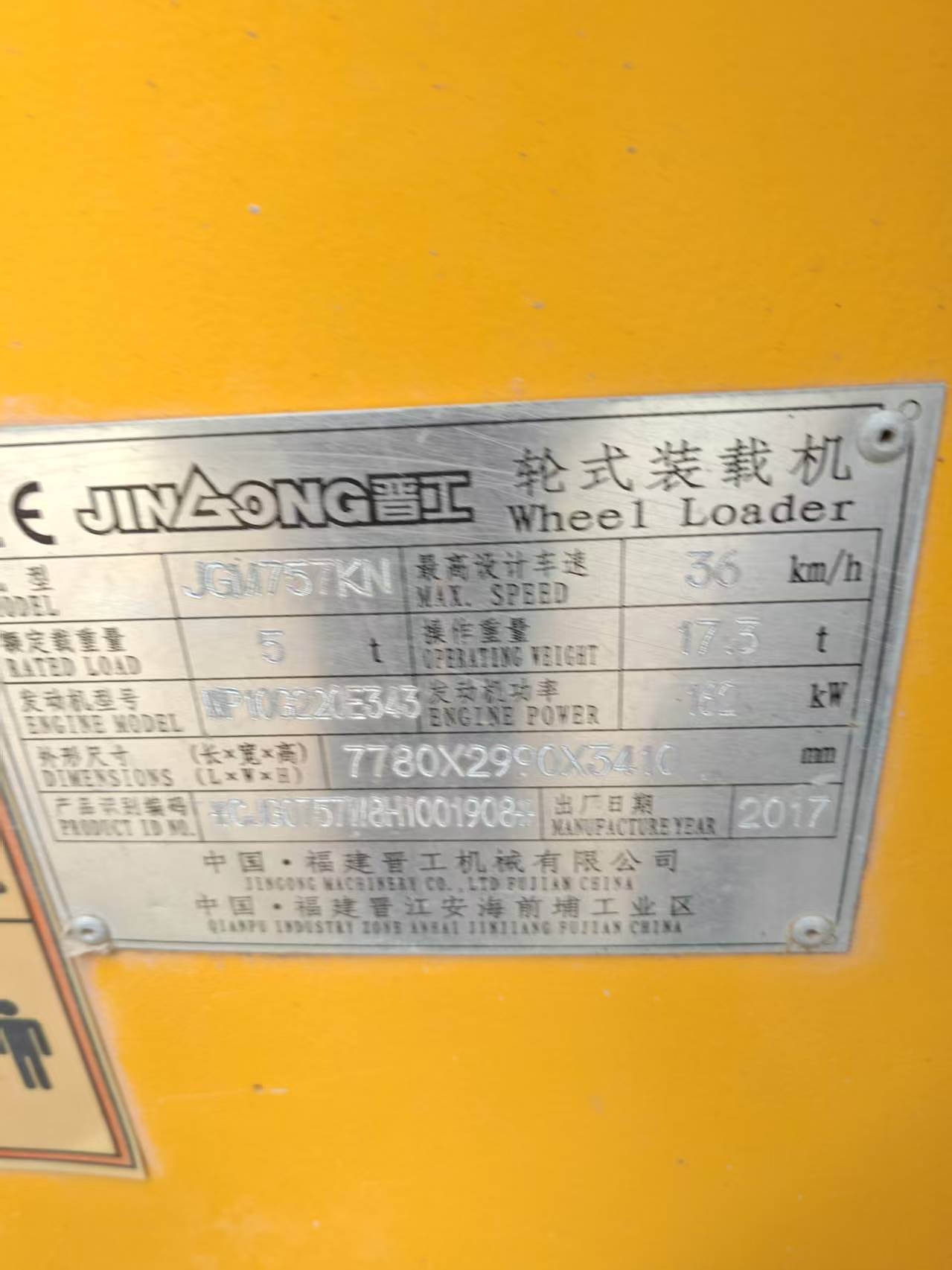 晋工50系装载机2017年出厂
