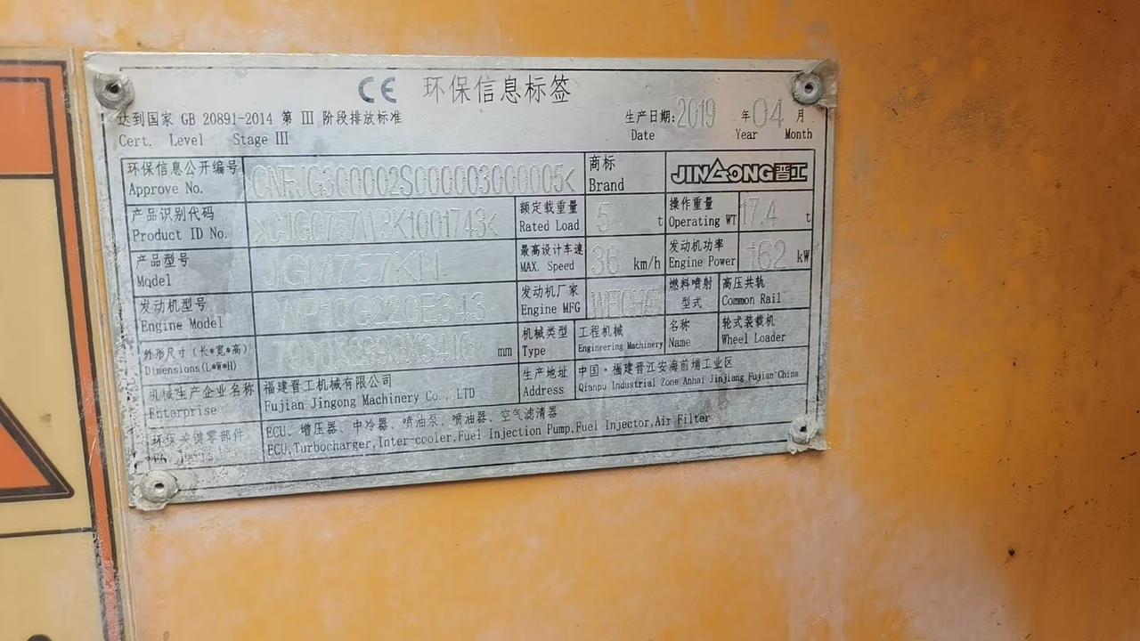 晋工50系装载机2019年出厂