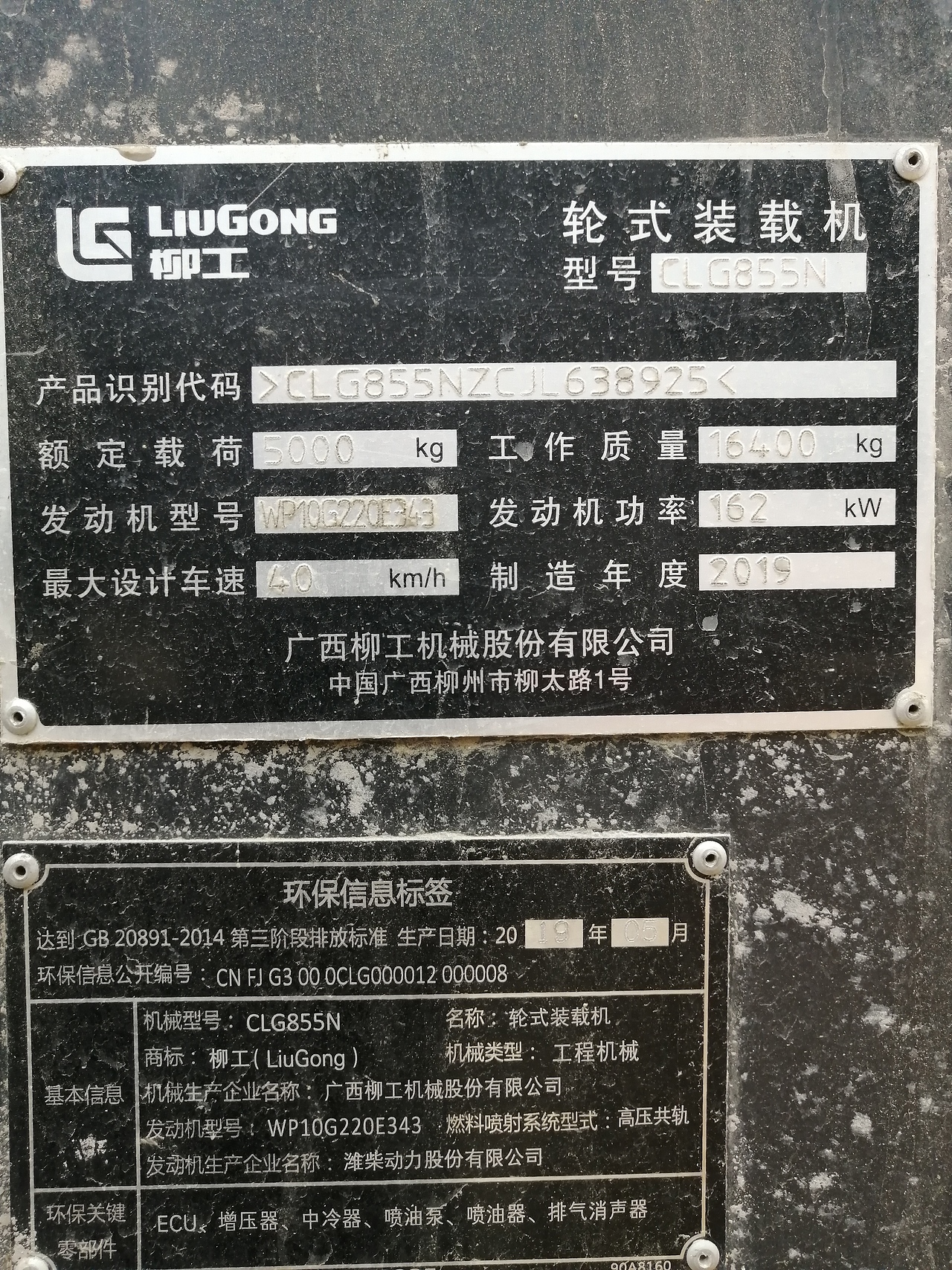 柳工855N装载机2019年出厂