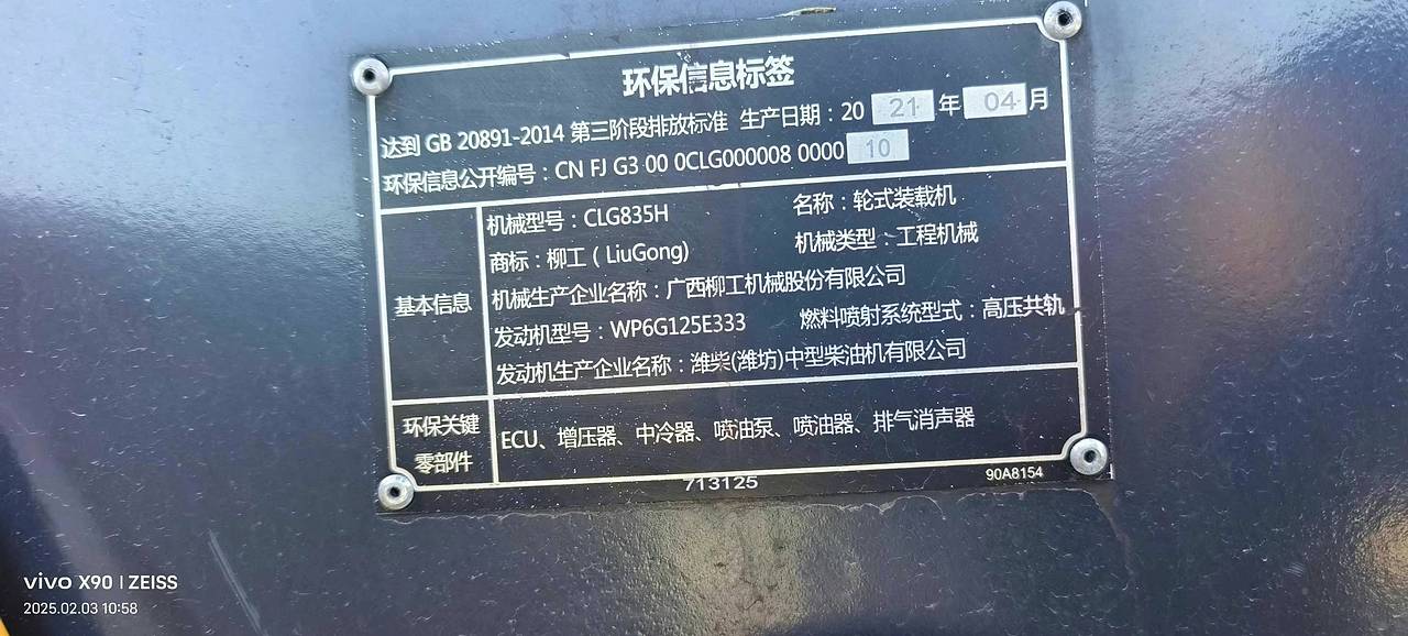 21年柳工835H,潍柴国三电喷大车架,1100小时