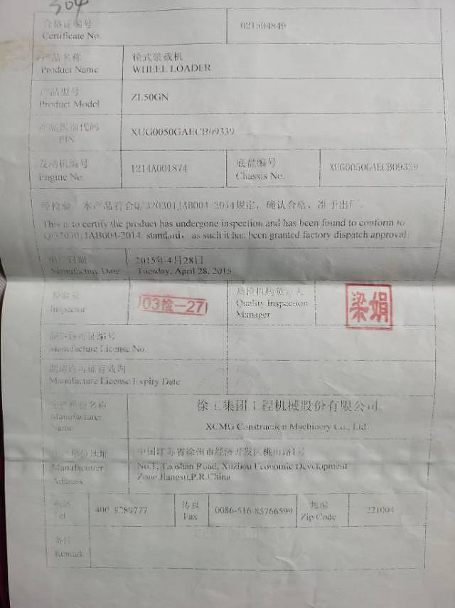 徐工50GN装载机2015年出厂