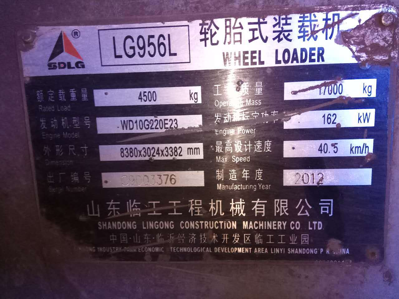 临工956L装载机2012年出厂